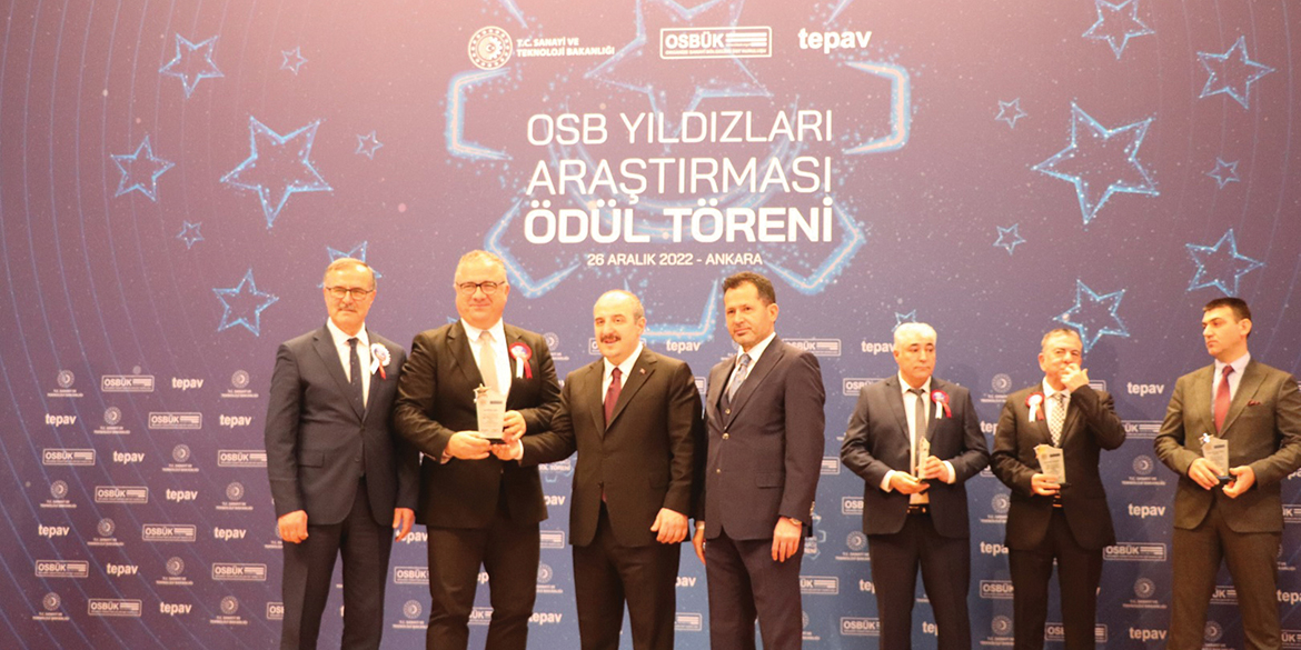 Ankara’da düzenlenen törende OSB’lerin yıldızlarının ödülleri, Sanayi ve Teknoloji Bakanı Mustafa Varank, OSBÜK Başkanı Memiş Kütükcü ve TBMM Sanayi Komisyonu Başkanı Ziya Altunyaldız tarafından verildi.